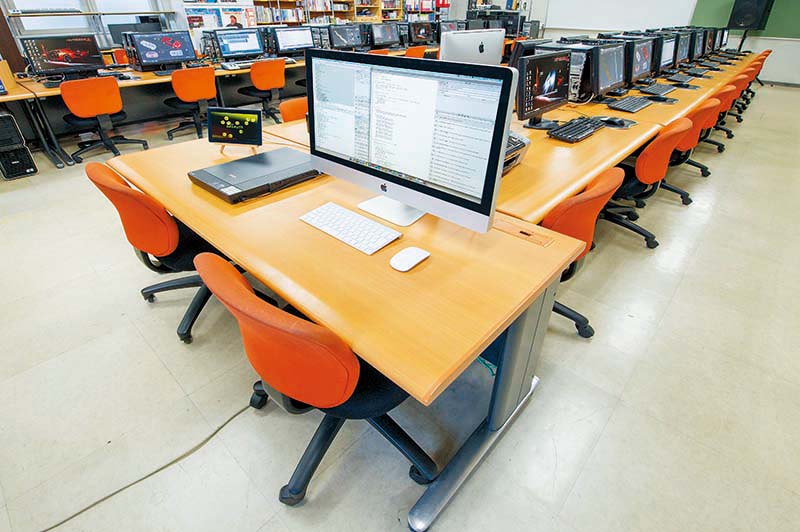 為了讓學生在比擬專業職場的環境中磨練技能,學校提供了超過2000台以上最新且具備高性能的電腦,許多學科在下課之後仍開放實習教室,讓學生有更多實踐的機會,也在有助於累積各項接軌職場的實力。而課堂上所使用的教科書,以及演習、實習中的練習冊及實習筆記等等,都是學校所開發的原創教材;此外,還有由專業動畫師所製作超過300部以上的課題練習影片,以及與企業共同開發,以多種案例所製作出的教材等等。目前使用了約400種科目的原創教材,這些教材建立在學校多年教育實績的基礎上,並針對提升學習效果進行了精心的設計與改良,比起市售教材更易懂且具有成效。